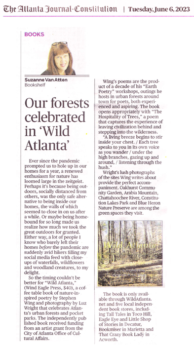 Atlanta Journal-Constitution review by Suzanne VanAtten, “Bookshelf” column, June 6, 2023
